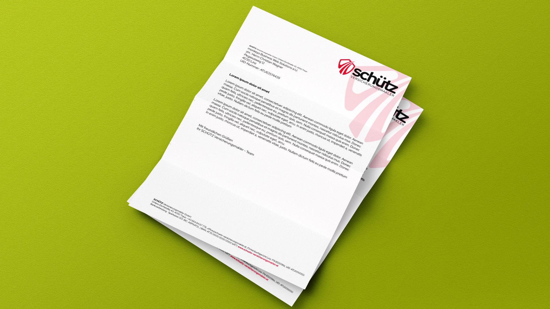 Für die SCHÜTZ Versicherungsmakler GmbH durfte ich die vollständige Markenentwicklung im Zuge der Umfirmierung begleiten. Nach vielen Jahren erfolgreicher Tätigkeit als Einzelunternehmen war der Schritt zur GmbH die logische Weiterentwicklung – und damit auch der perfekte Zeitpunkt für ein neues visuelles Erscheinungsbild.